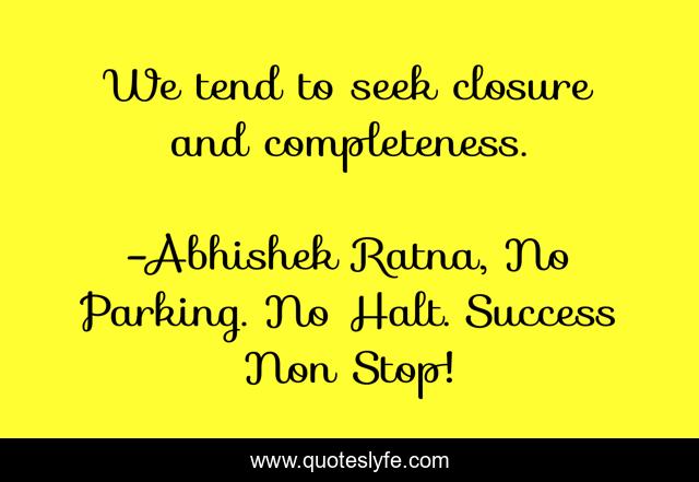 "Abhishek Ratna, No Parking. No Halt. Success Non Stop! Quotes." Quoteslyfe.com, 2025. Mon. 15 Dec. 2025. <https://www.quoteslyfe.com/quote/We-tend-to-seek-closure-and-completeness-109090>.