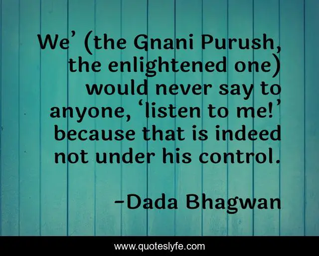 "Dada Bhagwan Quotes." Quoteslyfe.com, 2025. Mon. 08 Dec. 2025. <https://www.quoteslyfe.com/quote/We-the-Gnani-Purush-the-enlightened-one-67415>.