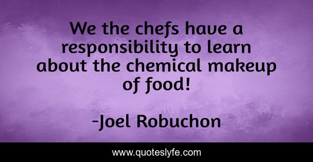 This page presents the quote "We the chefs have a responsibility to learn about the chemical makeup of food!". Author of this quote is Joel Robuchon. This quote is about makeup, responsibility,.