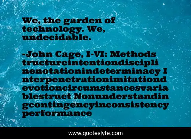 "John Cage Quotes." Quoteslyfe.com, 2025. Fri. 05 Dec. 2025. <https://www.quoteslyfe.com/quote/We-the-garden-of-technology-We-undecidable-196689>.
