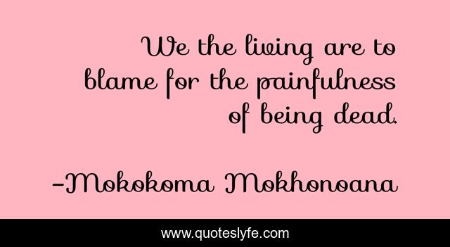 "Mokokoma Mokhonoana Quotes." Quoteslyfe.com, 2025. Sat. 06 Dec. 2025. <https://www.quoteslyfe.com/quote/We-the-living-are-to-blame-for-56267>.