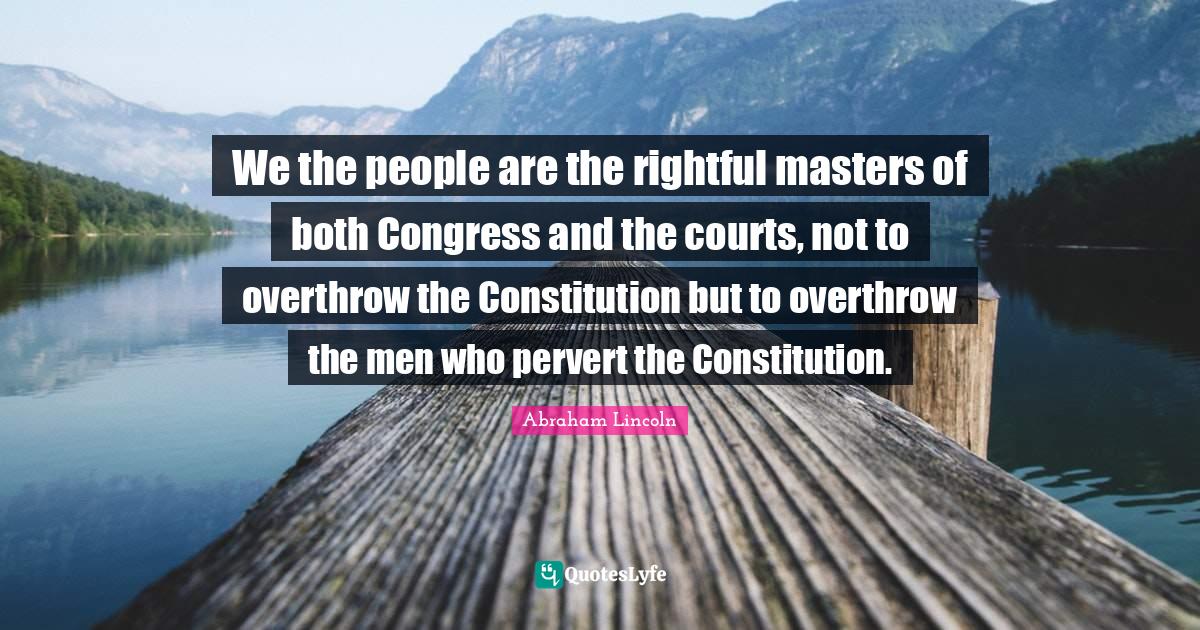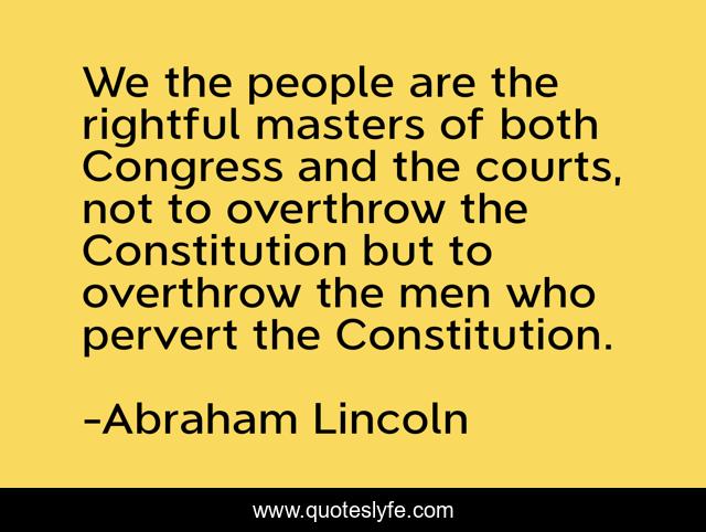 This page presents the quote "We the people are the rightful masters of both Congress and the courts, not to overthrow the Constitution but to overthrow the men who pervert the Constitution.". Author of this quote is Abraham Lincoln. This quote is about freedom, constitution, democracy, liberty,.