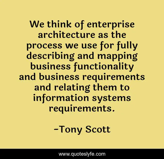 "Tony Scott Quotes." Quoteslyfe.com, 2025. Sun. 14 Dec. 2025. <https://www.quoteslyfe.com/quote/We-think-of-enterprise-architecture-as-the-299583>.