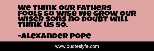 This page presents the quote "We think our fathers fools so wise we grow Our wiser sons no doubt will think us so.". Author of this quote is Alexander Pope. .