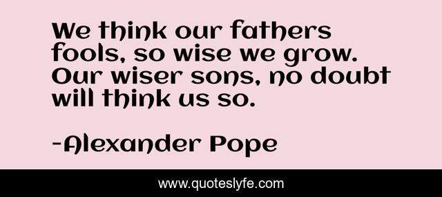 "Alexander Pope Quotes." Quoteslyfe.com, 2025. Mon. 08 Dec. 2025. <https://www.quoteslyfe.com/quote/We-think-our-fathers-fools-so-wise-42485>.