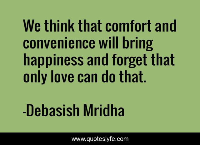 This page presents the quote "We think that comfort and convenience will bring happiness and forget that only love can do that.". Author of this quote is Debasish Mridha. This quote is about love, what-love-can-do, philosophy, debasish-mridha, comfort-and-convenience, quotes, debasish-mridha-md, inspirational, enthusiasm,.