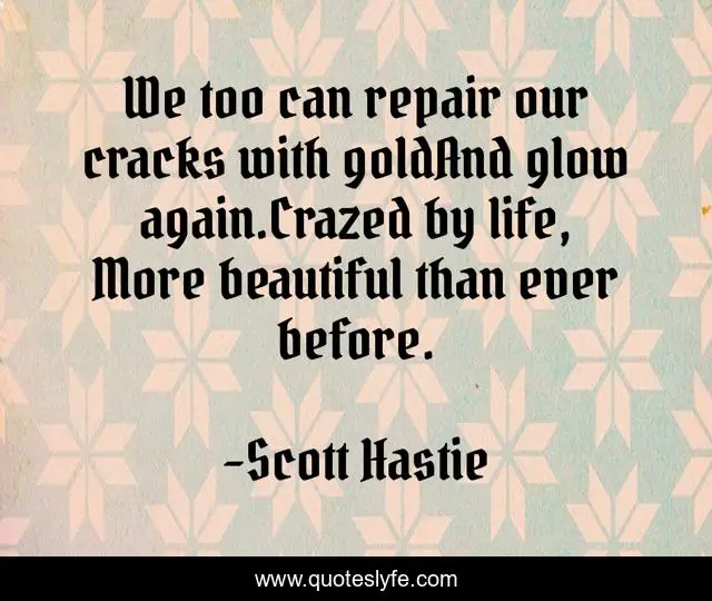 "Scott Hastie Quotes." Quoteslyfe.com, 2025. Mon. 08 Dec. 2025. <https://www.quoteslyfe.com/quote/We-too-can-repair-our-cracks-with-98842>.