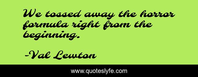 This page presents the quote "We tossed away the horror formula right from the beginning.". Author of this quote is Val Lewton. .
