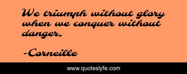 This page presents the quote "We triumph without glory when we conquer without danger.". Author of this quote is Corneille. .