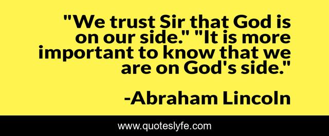 This page presents the quote ""We trust Sir that God is on our side." "It is more important to know that we are on God's side."". Author of this quote is Abraham Lincoln. .
