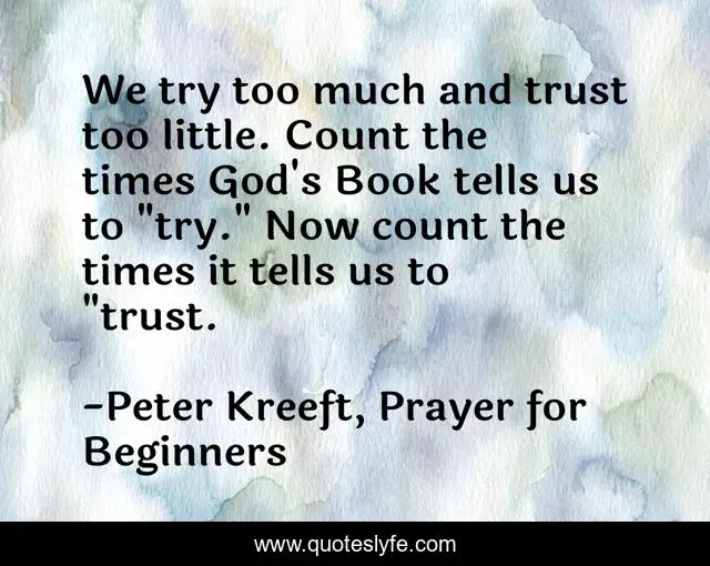 "Peter Kreeft, Prayer for Beginners Quotes." Quoteslyfe.com, 2025. Fri. 05 Dec. 2025. <https://www.quoteslyfe.com/quote/We-try-too-much-and-trust-too-11134>.