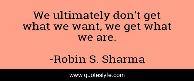This page presents the quote "We ultimately don't get what we want, we get what we are.". Author of this quote is Robin S. Sharma. .