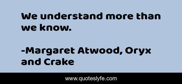 "Margaret Atwood, Oryx and Crake Quotes." Quoteslyfe.com, 2025. Fri. 05 Dec. 2025. <https://www.quoteslyfe.com/quote/We-understand-more-than-we-know-12438>.