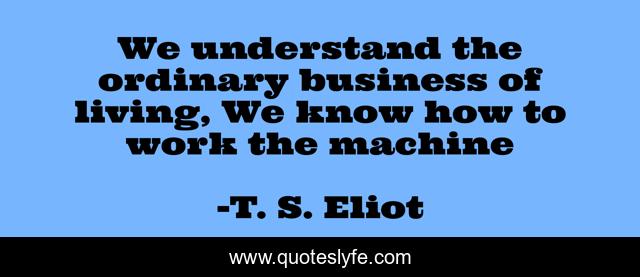 This page presents the quote "We understand the ordinary business of living, We know how to work the machine". Author of this quote is T. S. Eliot. This quote is about machine, living,.