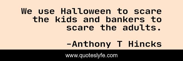 This page presents the quote "We use Halloween to scare the kids and bankers to scare the adults.". Author of this quote is Anthony T Hincks. This quote is about life, kids, adults, frighten, philosophy, halloween, bankers, banks, scare,.