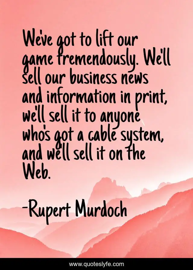 This page presents the quote "We've got to lift our game tremendously. We'll sell our business news and information in print, we'll sell it to anyone who's got a cable system, and we'll sell it on the Web.". Author of this quote is Rupert Murdoch. This quote is about information, game, lift,.