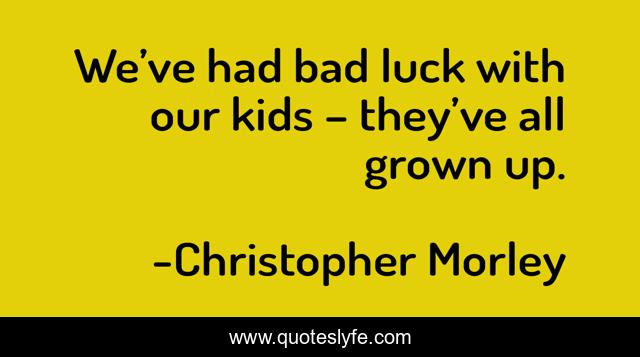 This page presents the quote "We’ve had bad luck with our kids – they’ve all grown up.". Author of this quote is Christopher Morley. This quote is about parents, child-raising, children,.