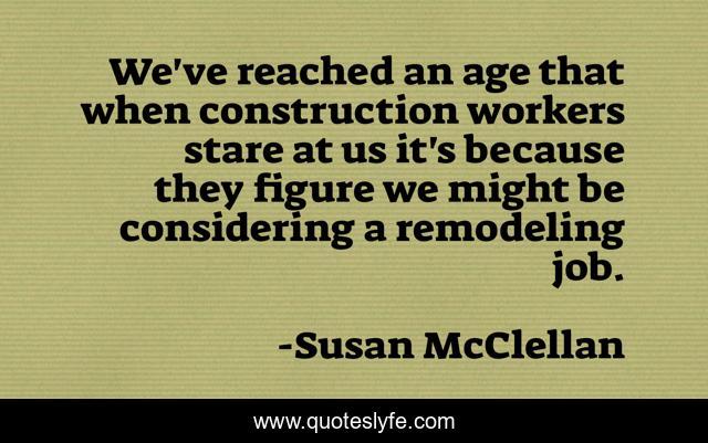 This page presents the quote "We've reached an age that when construction workers stare at us it's because they figure we might be considering a remodeling job.". Author of this quote is Susan McClellan. This quote is about age, birthdays,.