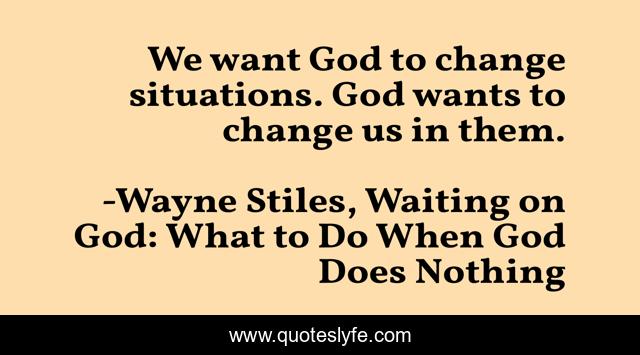 "Wayne Stiles, Waiting on God: What to Do When God Does Nothing Quotes." Quoteslyfe.com, 2025. Sat. 06 Dec. 2025. <https://www.quoteslyfe.com/quote/We-want-God-to-change-situations-God-143709>.
