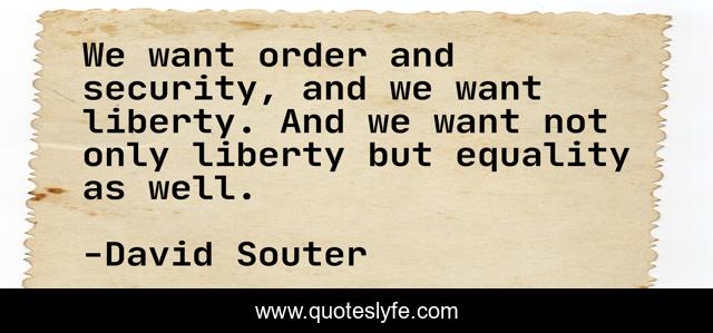 This page presents the quote "We want order and security, and we want liberty. And we want not only liberty but equality as well.". Author of this quote is David Souter. This quote is about security, liberty,.