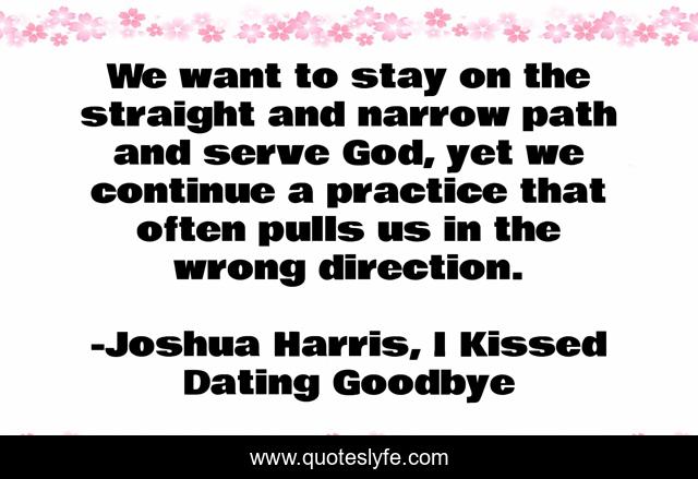 This page presents the quote "We want to stay on the straight and narrow path and serve God, yet we continue a practice that often pulls us in the wrong direction.". Author of this quote is Joshua Harris, I Kissed Dating Goodbye. This quote is about dating, love, christians, affection,.