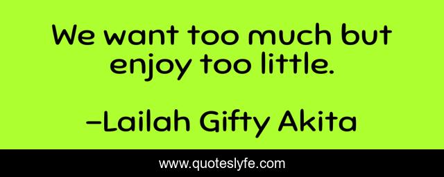 "Lailah Gifty Akita Quotes." Quoteslyfe.com, 2025. Fri. 05 Dec. 2025. <https://www.quoteslyfe.com/quote/We-want-too-much-but-enjoy-too-36587>.