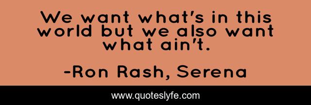 This page presents the quote "We want what's in this world but we also want what ain't.". Author of this quote is Ron Rash, Serena. This quote is about impossible-things, the-world, life, possible, belief,.