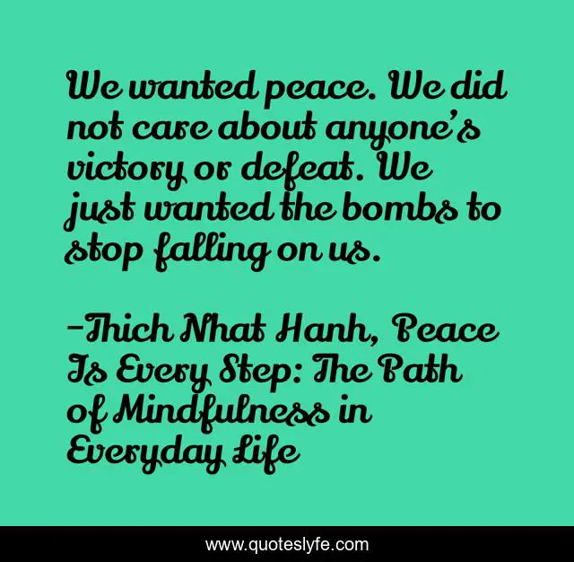 This page presents the quote "We wanted peace. We did not care about anyone’s victory or defeat. We just wanted the bombs to stop falling on us.". Author of this quote is Thich Nhat Hanh, Peace Is Every Step: The Path of Mindfulness in Everyday Life. .
