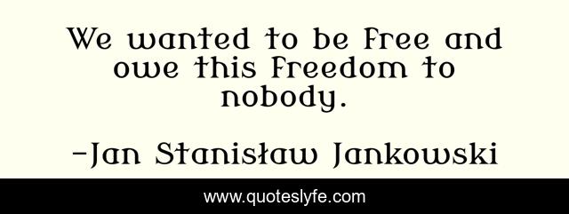 "Jan Stanisław Jankowski Quotes." Quoteslyfe.com, 2025. Mon. 08 Dec. 2025. <https://www.quoteslyfe.com/quote/We-wanted-to-be-free-and-owe-55051>.