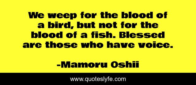 This page presents the quote "We weep for the blood of a bird, but not for the blood of a fish. Blessed are those who have voice.". Author of this quote is Mamoru Oshii. This quote is about ghost-in-the-shell, empathy, philosophy, gits,.