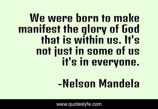This page presents the quote "We were born to make manifest the glory of God that is within us. It's not just in some of us it's in everyone.". Author of this quote is Nelson Mandela. .