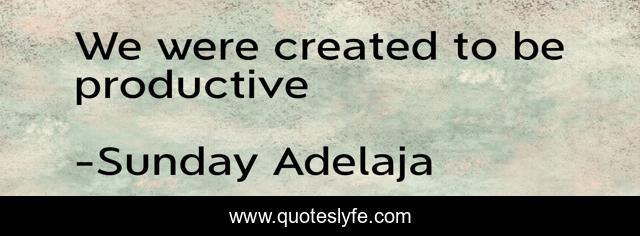 This page presents the quote "We were created to be productive". Author of this quote is Sunday Adelaja. This quote is about life, blessing, productivity, finance, money, creation, product, job, productive,.