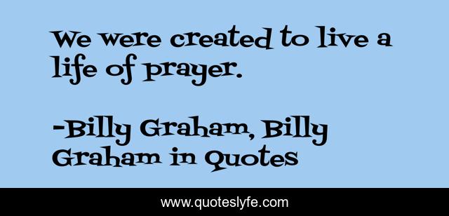 This page presents the quote "We were created to live a life of prayer.". Author of this quote is Billy Graham, Billy Graham in Quotes. This quote is about billy-graham, prayer,.