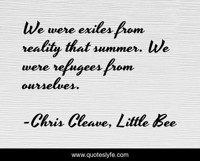 "Chris Cleave, Little Bee Quotes." Quoteslyfe.com, 2025. Fri. 05 Dec. 2025. <https://www.quoteslyfe.com/quote/We-were-exiles-from-reality-that-summer-242255>.