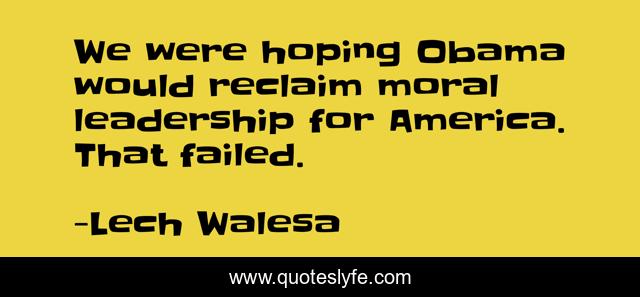 This page presents the quote "We were hoping Obama would reclaim moral leadership for America. That failed.". Author of this quote is Lech Walesa. This quote is about failed, america, moral,.