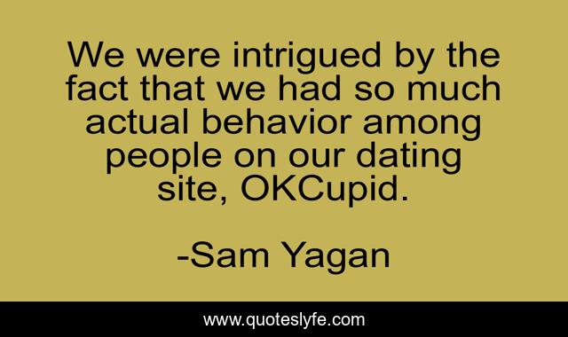 This page presents the quote "We were intrigued by the fact that we had so much actual behavior among people on our dating site, OKCupid.". Author of this quote is Sam Yagan. This quote is about behavior, fact, people,.