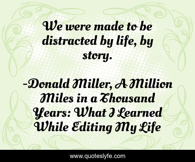 "Donald Miller, A Million Miles in a Thousand Years: What I Learned While Editing My Life Quotes." Quoteslyfe.com, 2026. Tue. 13 Jan. 2026. <https://www.quoteslyfe.com/quote/We-were-made-to-be-distracted-by-196404>.