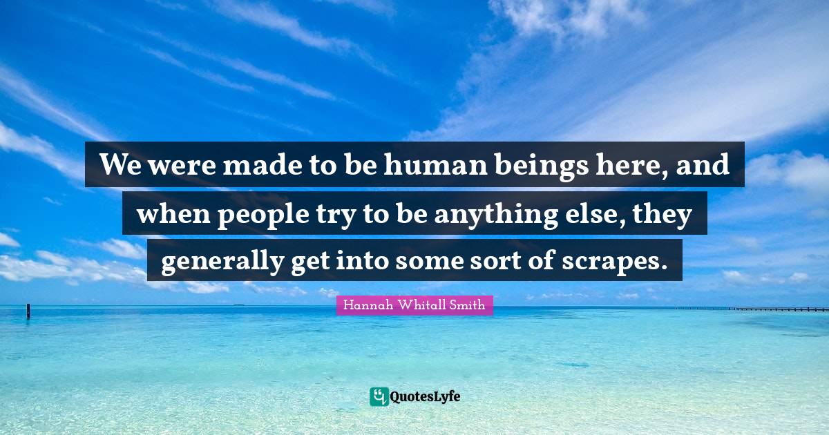 "Hannah Whitall Smith Quotes." Quoteslyfe.com, 2026. Wed. 14 Jan. 2026. <https://www.quoteslyfe.com/quote/We-were-made-to-be-human-beings-634894>.