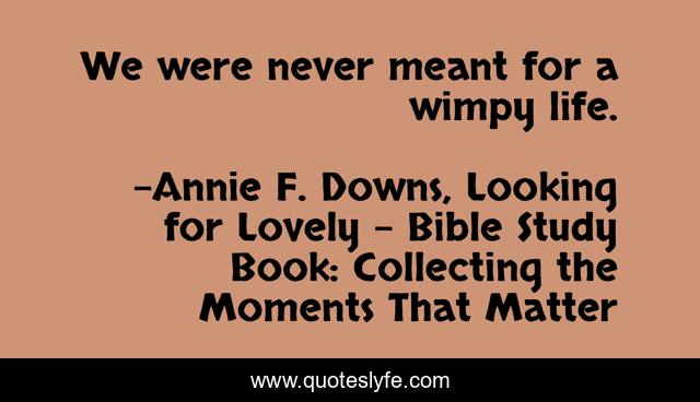"Annie F. Downs, Looking for Lovely - Bible Study Book: Collecting the Moments That Matter Quotes." Quoteslyfe.com, 2025. Sun. 07 Dec. 2025. <https://www.quoteslyfe.com/quote/We-were-never-meant-for-a-wimpy-91532>.