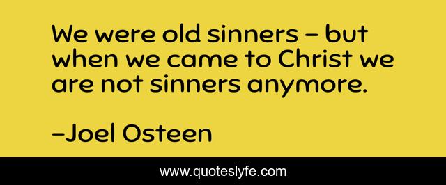 This page presents the quote "We were old sinners - but when we came to Christ we are not sinners anymore.". Author of this quote is Joel Osteen. This quote is about old, christ, anymore,.