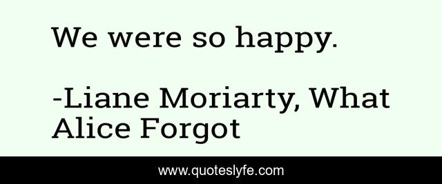 "Liane Moriarty, What Alice Forgot Quotes." Quoteslyfe.com, 2025. Sat. 06 Dec. 2025. <https://www.quoteslyfe.com/quote/We-were-so-happy-16661>.