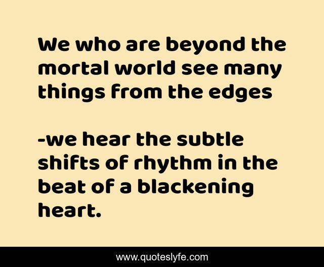 "we hear the subtle shifts of rhythm in the beat of a blackening heart. Quotes." Quoteslyfe.com, 2025. Sun. 07 Dec. 2025. <https://www.quoteslyfe.com/quote/We-who-are-beyond-the-mortal-world-163995>.