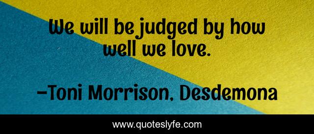 This page presents the quote "We will be judged by how well we love.". Author of this quote is Toni Morrison, Desdemona. This quote is about judgement, love, affection,.