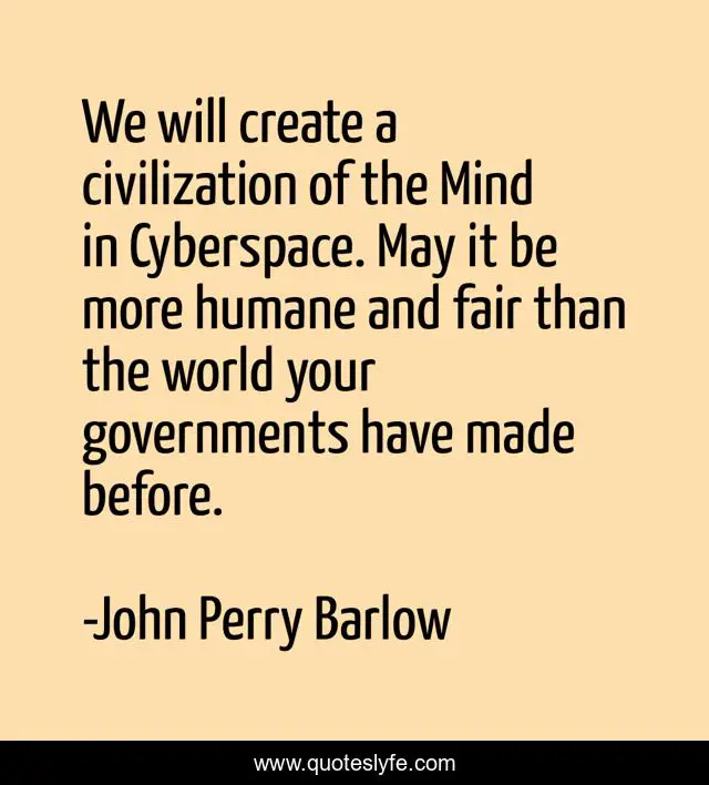 "John Perry Barlow Quotes." Quoteslyfe.com, 2025. Fri. 05 Dec. 2025. <https://www.quoteslyfe.com/quote/We-will-create-a-civilization-of-the-320037>.
