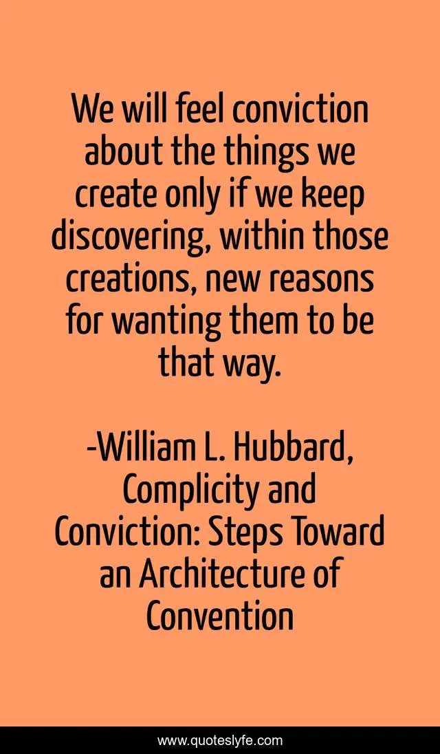 "William L. Hubbard, Complicity and Conviction: Steps Toward an Architecture of Convention Quotes." Quoteslyfe.com, 2025. Sat. 06 Dec. 2025. <https://www.quoteslyfe.com/quote/We-will-feel-conviction-about-the-things-66180>.