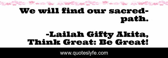 "Lailah Gifty Akita, Think Great: Be Great! Quotes." Quoteslyfe.com, 2025. Sat. 06 Dec. 2025. <https://www.quoteslyfe.com/quote/We-will-find-our-sacred-path-174477>.