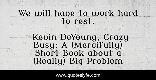 This page presents the quote "We will have to work hard to rest.". Author of this quote is Kevin DeYoung, Crazy Busy: A (Mercifully) Short Book about a (Really) Big Problem. This quote is about discipline, faith, discipleship, anxiety,.