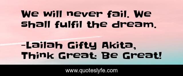 "Lailah Gifty Akita, Think Great: Be Great! Quotes." Quoteslyfe.com, 2025. Mon. 08 Dec. 2025. <https://www.quoteslyfe.com/quote/We-will-never-fail-We-shall-fulfil-130362>.