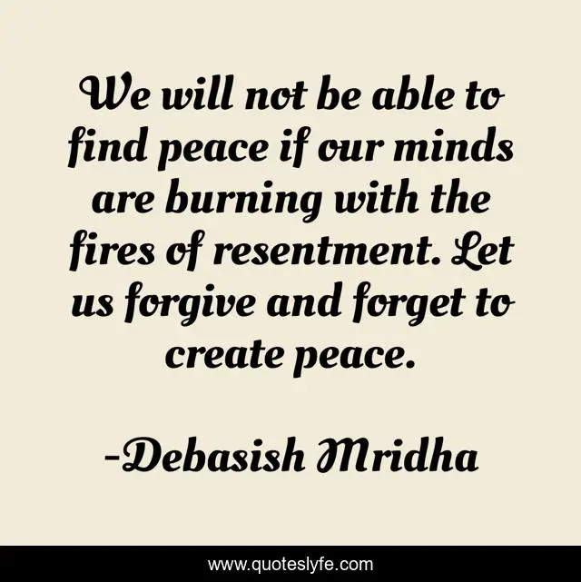 We will not be able to find peace if our minds are burning with the fires of resentment. Let us forgive and forget to create peace.