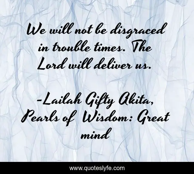 "Lailah Gifty Akita, Pearls of Wisdom: Great mind Quotes." Quoteslyfe.com, 2025. Mon. 08 Dec. 2025. <https://www.quoteslyfe.com/quote/We-will-not-be-disgraced-in-trouble-94830>.